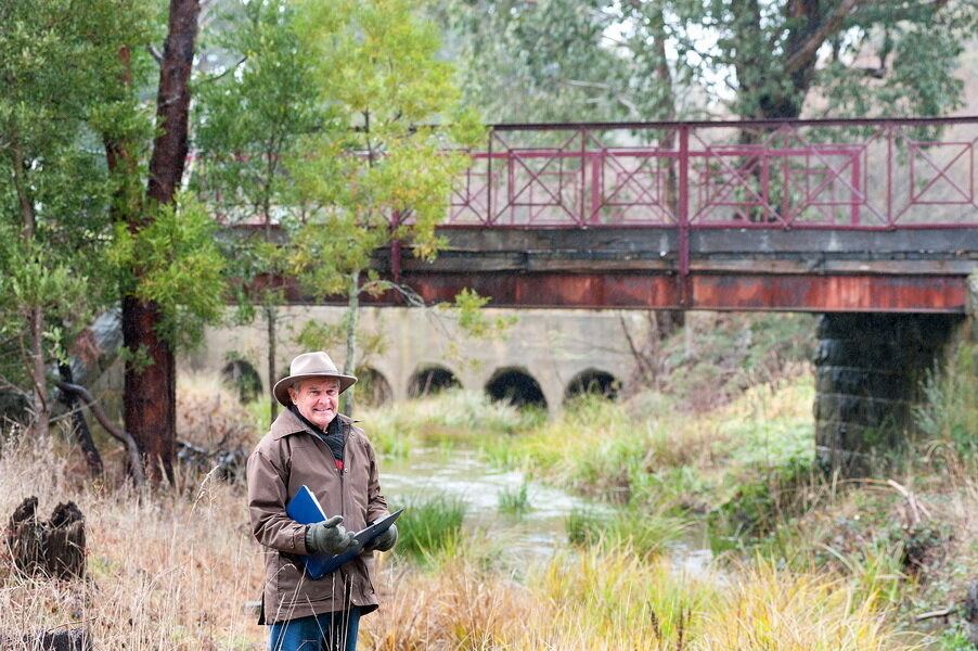 For advice on plant choice we’d like to thank ecologist Damien Cook, local Landcare legend Gael Elliot, and Friends of Trentham Creeks and Reserves pioneer Jan Robertson. Species comprising this new venture include: Narrow-leaf Peppermint (Eucalyptus radiata), Prickly currant bush (Coprosma quadrifida), Tree everlasting (Ozothamnus ferrugineus), Musk Daisy Bush (Olearia argophylla) Red Fruit Saw Sedge (Gahnia sieberiana), Tasman flax-lily (Dianella Tasmanica) and Ivy-leaf violet (Viola hederaceae) and lots more.
